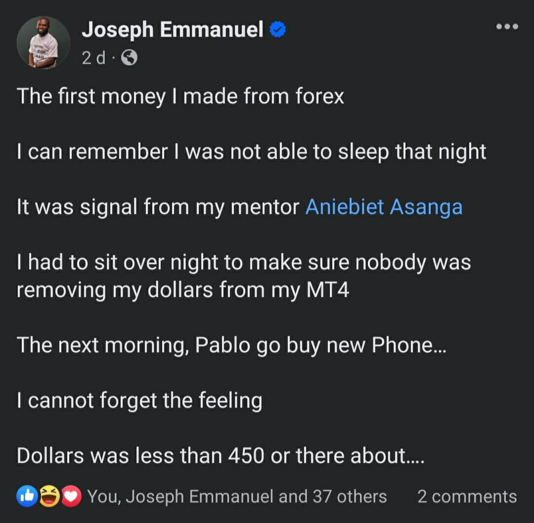 "Made his first money in forex with our trading signals" - Joseph Emmanuel, Blockchain and Forex Analyst